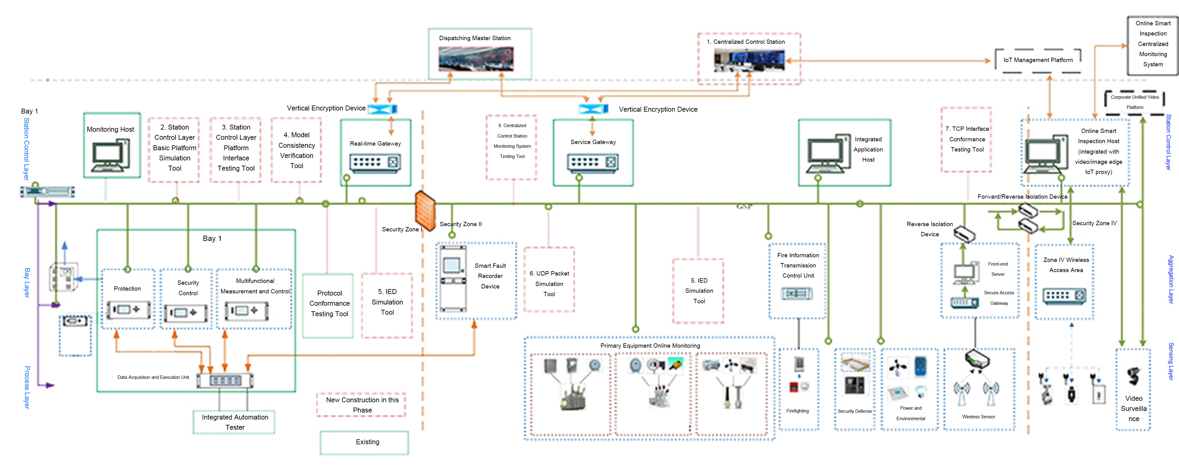 The new-generation high-reliability substation secondary system debugging system integrates a multi-dimensional test toolchain, including station control layer platform interface test tools, basic platform simulation tools, model file verification tools, data communication gateway test tools, UDP message simulation tools, TCP interface compliance test tools, centralized control center equipment monitoring system test tools, and on-site commissioning acceptance tools.